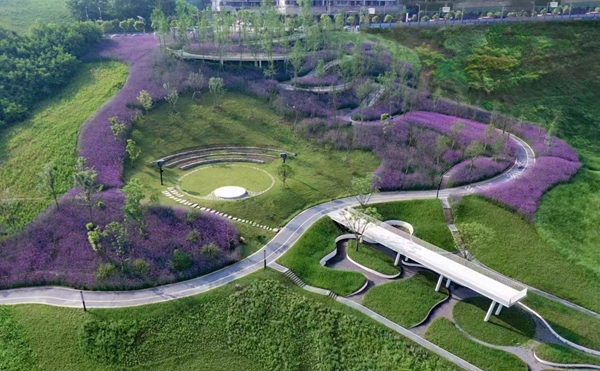 5月盛放于重庆华侨城滨江生态带的马鞭草花海。重庆华侨城供图